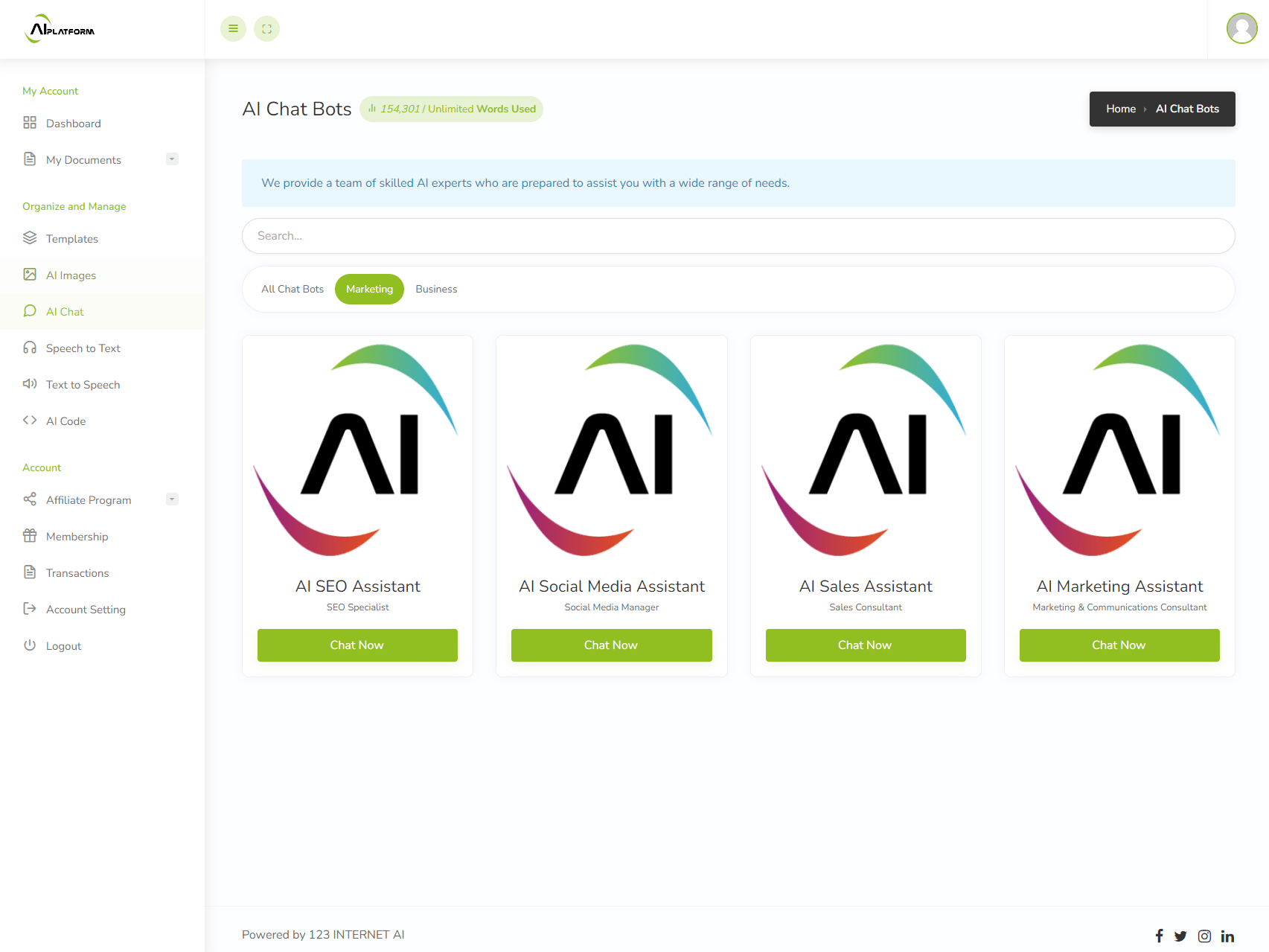 Don’t get left behind—embrace the future with 123 Internet’s AI Platform and revolutionize the way you do marketing. Get started today and embark on a journey towards unparalleled growth and success.
