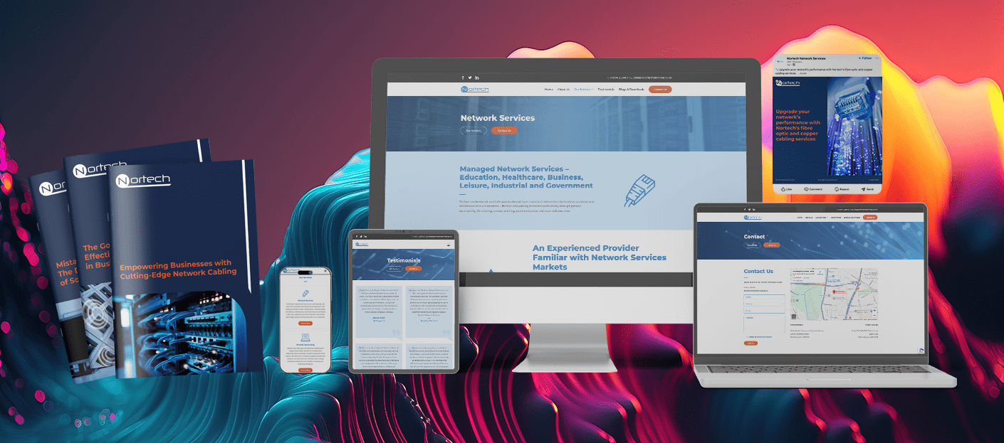 To complement the website, we implemented a social media strategy aimed at increasing engagement and brand awareness. We created regular posts for platforms like LinkedIn and Twitter, featuring updates, service highlights, and industry insights. Our content aimed to position Nortech as a thought leader in the wireless networking and cabling sector.