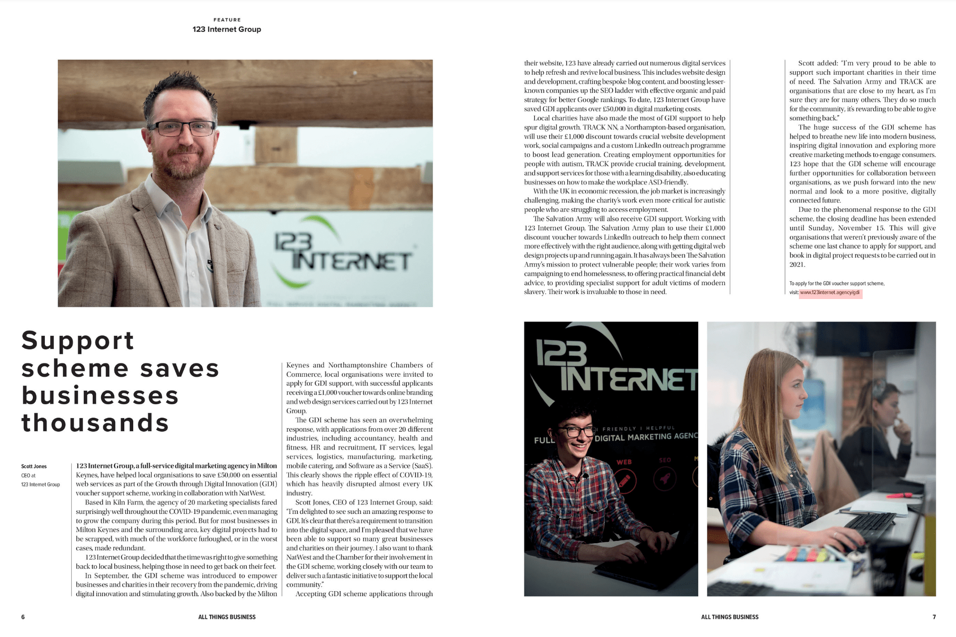 In September, the GDI scheme was introduced to empower businesses and charities in their recovery from the pandemic, driving digital innovation and stimulating growth. Also backed by the Milton Keynes and Northamptonshire Chambers of Commerce, local organisations were invited to apply for GDI support, with successful applicants receiving a £1,000 voucher towards online branding and web design services carried out by 123 Internet Group.